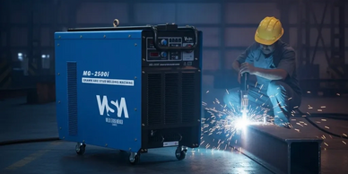 Equipo Marca WSM con Fuente de poder con tecnologia Inverter, MG-2500i para soldar diametros desde 3/8" hasta 7/8" y MG-3150i para soldar diametros desde 3/8" hasta 1" además con solo oprimir un botón cambia a Modo Stick Welding para soldar con Electrodo. Idóneo para ramo de Pailieria Mediana/Pesada y Estructura Metálica.